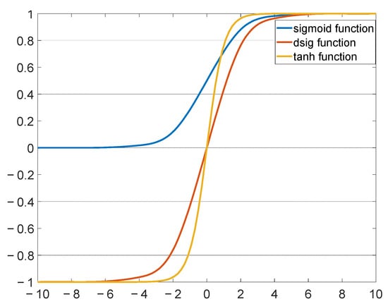 Observing Figure 7, these three activation functions exist in their respective saturation regions. When the independent variable is greater than 4, it is obvious that the sigmoid and dsig functions enter the saturation region, at which point the output becomes insensitive to minor variations in the input. When the independent variable is greater than 2, the tanh function enters the saturation region. To solve the activation function saturation problem, the BN structure is introduced in this paper before calculating the activation function. Figure 8 shows the structure of BNVTELM.
