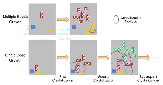 Two crystal growth manners of the proposed Crystallization Copy-paste augmentation.