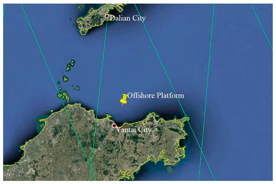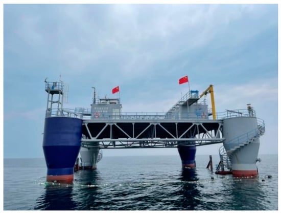 An experimental study was conducted on an offshore platform (as shown in Figure 1) from 11 August 2022 to 1 September 2022, with the observation platform situated about 30 km north of Yangma Island in Yantai, China (121.622°E, 37.695°N, as shown in Figure 2).