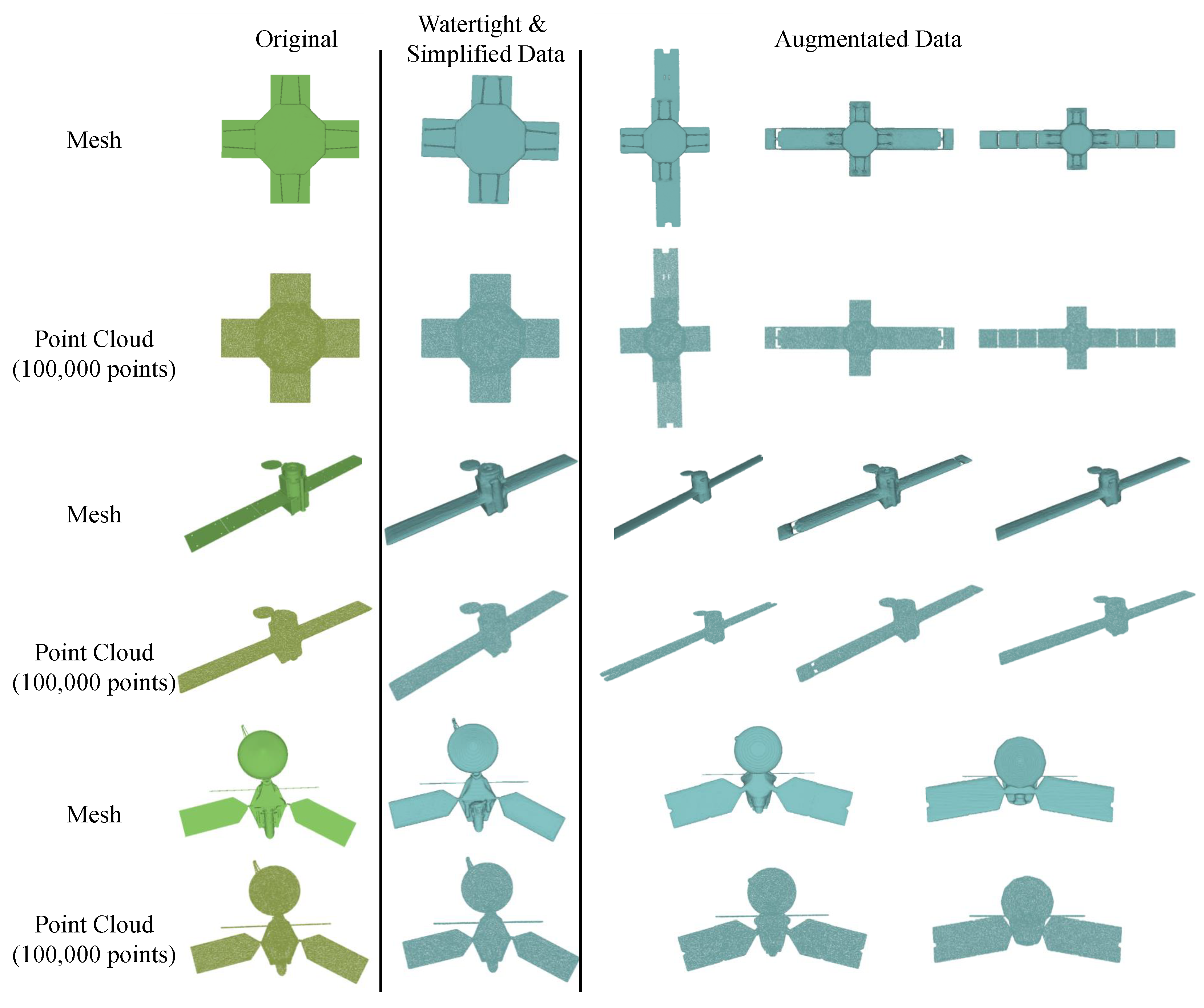 - We build a dataset for tackling satellite mesh reconstruction from sparse point cloud tasks through learning-based methods. Moreover, we are the first to utilize implicit neural representation to reconstruct meshes from sparse point clouds.