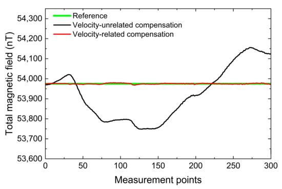 Finally, the compensation for total magnetic field distortion can be achieved through the velocity-related compensation model expressed in Equation (10).