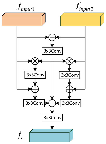 There are currently various methods for extracting change features, such as subtraction, addition, or concatenation operations, among others. However, the extraction of change features through these simple operations often hinders the network’s discriminative ability. Particularly, the network’s deep features, being abstract, are rendered unrecognizable by these operations, which leads to misjudgments and omissions during prediction. Hence, this section proposes a change feature extraction module (CFEM). It is depicted in Figure 3 as its structure. This module aims to extract the essential change features from the bitemporal remote sensing images to enhance the network’s change detection discriminative ability.