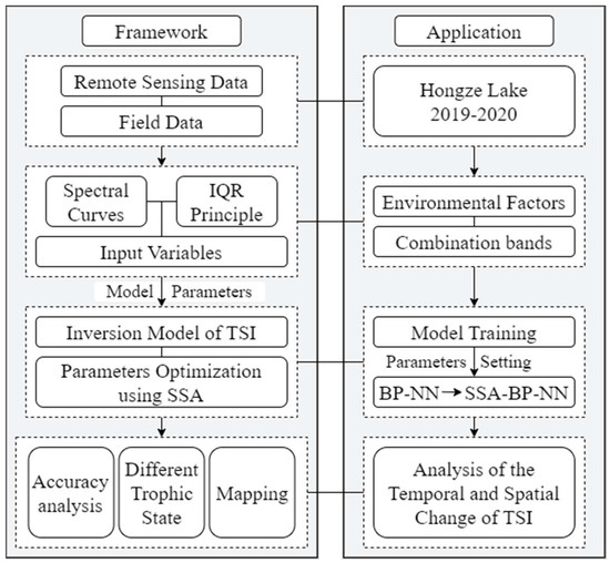 An integrated framework employs multiple techniques and methods to invert the TSI of water bodies. Based on the framework, the specific workflow for this study was as follows (Figure 3):