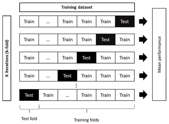 Schematic diagram of k-fold cross validation principle (adapted from Phung and Rhee (2019) []).