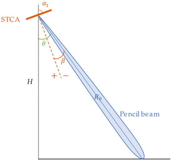 The STCA is placed as depicted in Figure 5, where is the antenna tilt angle. Assuming that the synthetic beam pointing angle is positive on the left side of the array normal and negative on the right side, the look angle of the pencil beam is related to angle , as follows: