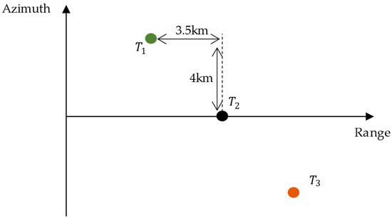The layout of point targets , , and in the ground scene are depicted in Figure 8, where they are located at different range gates.