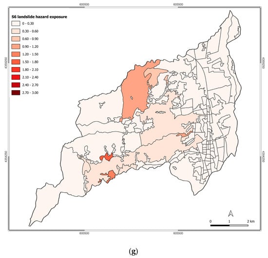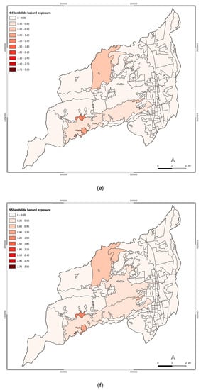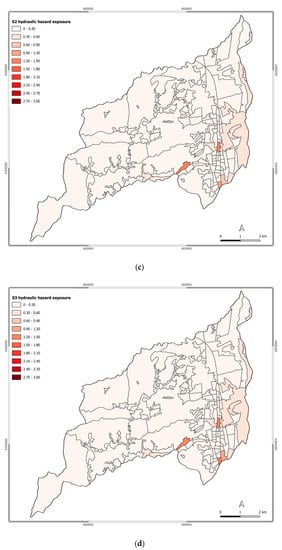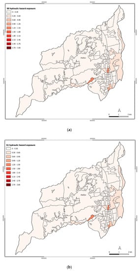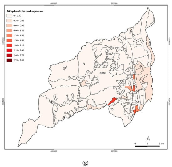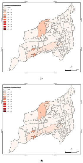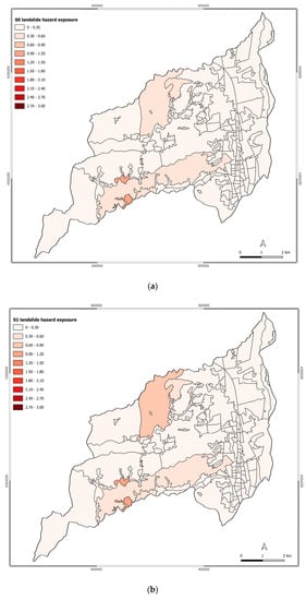 Disaster risk [] is defined as the combination of three determinants, such as hazard, exposure, and vulnerability [,,,]. These three components change over time due to natural and human influences impacting future risk levels. Among them, exposure is the most important because it represents the elements that can be affected by a particular hazard in a specific area.