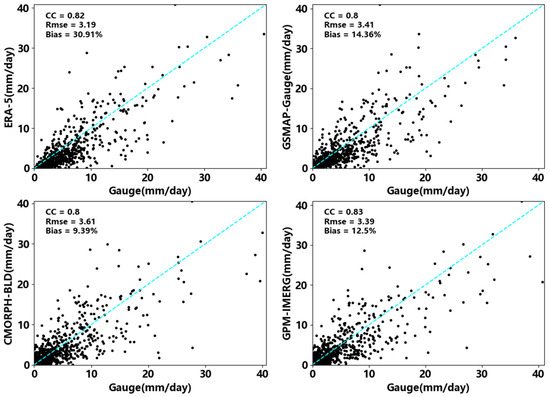 Publicly available datasets were used in this study. This data can be found here: (1) GPM-IMERG dataset can be obtained at https://disc.gsfc.nasa.gov/ (accessed on 1 March 2022). (2) GSMAP-Gauge dataset can be obtained at https://sharaku.eorc.jaxa.jp/ (accessed on 1 March 2022). (3) ERA-5 dataset can be obtained at https://cds.climate.copernicus.eu/ (accessed on 1 March 2022). (4) CMORPH-BLD dataset can be obtained at ftp://ftp.cpc.ncep.noaa.gov/ (accessed on 1 March 2022). (5) DEM data can be obtained at https://www.gscloud.cn/ (accessed on 1 March 2022). Gauge data are provided by Sichuan Meteorological Bureau and belong to non-public data. Regarding the datasets generated during and/or analyzed during the current study are available from the corresponding author on reasonable request.