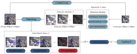 In this paper, we quantify the matchability with the matching probability index and design an automated sample production process for a matchability analysis task. The adaptive distortion model is employed to generate simulated real-time maps by imaging perturbation of the reference imagery. The number and probability of correctly matched real-time images is counted to calculate quantitative evaluation index of the matchability of the reference image. The strategy for aircraft image matching simulation encompasses two steps: perturbation and quantization, as illustrated in Figure 2.