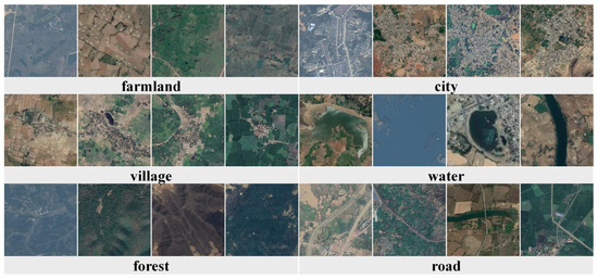 The dataset covers a diverse range of climate types and includes different terrains and vegetation. The elevation ranges from 50m to 3000m. During the generation process, the original images were cropped, and subregions with a center-to-center distance of 600 were selected as the images. The main land cover types in the WHU-SCENE-MATCHING dataset are shown in Figure 8.