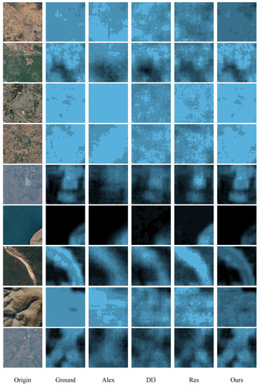 Compared to classical methods, deep learning methods offer finer-grained hierarchical representations. Effective learning of multi-scale features is crucial in matchability analysis tasks as the image contains several scales of saliency information. Failure to learn these features can significantly impact the model’s performance. In the ResNet model, residual connections can only operate within the same level and cannot facilitate cross-level information propagation. Therefore, the learning ability of multi-scale features is limited, resulting in poorer performance in saliency analysis and significant misclassification errors for low saliency features like water bodies. The AlexNet model exhibits excellent feature extraction capabilities and performs well in image classification and segmentation tasks on natural image datasets with its multi-branch and cross-connection architecture. However, these structures also make the model highly sensitive to noise and lighting disturbances, which can lead to biased matchability analysis results for certain types of reference imagery. For large continuous areas like farmland or deserts with weak textures, this model is prone to noise interference, resulting in erroneous matchability analysis. The DeepLabV3+ model employs dilated convolutions and the ASPP module to handle features at different scales. The above proprietary features give DeepLabV3+ an advantage over ResNet and AlexNet. However, these modules are unable to adequately fuse features across multiple scales, resulting in salient regions in an image that may not be fully captured. Thus, it becomes inevitable that models in complex scenes (e.g., mountains, valleys, and villages) have a reduced confidence in analyzing the match of reference imagery.