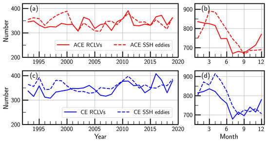 - The vorticity of RCLVs > 0 for anticyclonic eddies (ACEs), and else for cyclonic eddies (CEs) in the Northern Hemisphere.