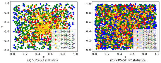 Considering the impact of noise on transmission, fog consistently exhibits spatial randomness and density nonuniformity. Therefore, we established the random diffusion of regional noise brightness. The input image was divided into different regions , and parts of the regions were randomly selected to participate in the diffusion processing. Based on the principle of center point diffusion, the diffusion degree at pixels (j, k) is defined as follows: