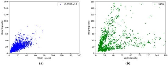 Examples from the LS-SSDD-v1.0 dataset. (a) Low signal-to-noise ratio; (b) deformation of the target.