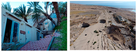 - Abou Karaki, N.; Fiaschi, S.; Paenen, K.; Al-Awabdeh, M.; Closson, D. Exposure of Tourism Development to Salt Karst Hazards along the Jordanian Dead Sea Shore. Hydrol. Earth Syst. Sci. 2019, 23, 2111–2127. [Google Scholar] [CrossRef]