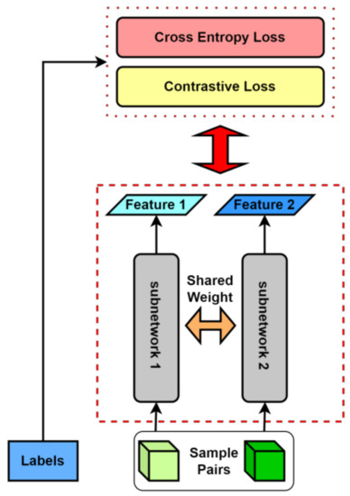 where represents the contrastive loss function and represents the entire subnet operation. By minimizing the contrastive loss (), the subnetworks can map the input samples to a space with smaller intraclass distances and larger interclass distances.