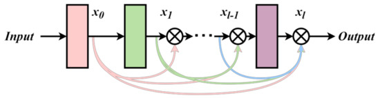 In DenseNet, each layer is connected to all previous layers, allowing each layer in the network to directly access the information from all previous layers. DenseNet is a compact model that is easy to train and parameter-efficient due to its feature reuse mechanism. DenseNet is expressed mathematically as Formula (2):