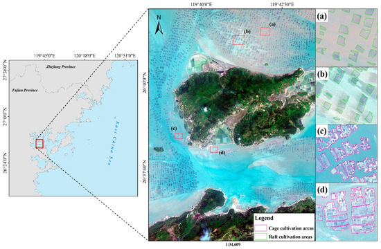 - Fu, Y.Y.; Deng, J.S.; Wang, H.Q.; Comber, A.; Yang, W.; Wu, W.Q.; You, S.X.; Lin, Y.; Wang, K. A new satellite-derived dataset for marine aquaculture areas in China’s coastal region. Earth Syst. Sci. Data 2021, 13, 1829–1842. [Google Scholar] [CrossRef]