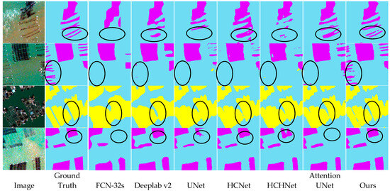 - An attention-mechanism-based structure was employed to refine the feature space in long-span connections, which helped to decline detailed structures of the marine aquaculture areas.