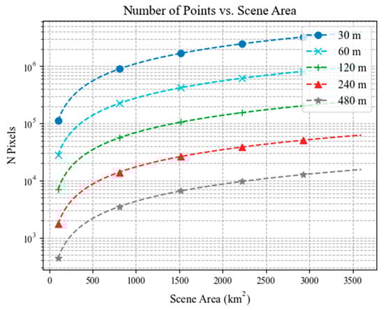 The number of spatial samples (pixels) depends not only on the GSD of an SCR, but also on the extent of the overlapping area between an SCR image and client (or reference) instrument image. Figure 16 shows that except for very small SCR-client (or SCR-reference) image acquisition overlap areas <~250 km2 and large SCR GSDs, near 480 m, the number of spatial samples available for a cross-calibration will exceed 1000.
