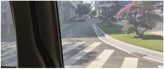 A total of three sets of raw data were selected for the experiments. The first and second sets correspond to the echo data obtained by imaging the letter A and an airplane model indoors, respectively, using the radar mounted on a small cart. Figure 11 shows the radar system mounted on the small cart. In the bottom left corner of Figure 11, there is a measuring wheel with a diameter of 14.8 cm. By rotating the measuring wheel a fixed distance, the radar is triggered to emit a signal, ensuring uniform sampling in the azimuth direction. The distance interval for uniform sampling is 0.646 mm. Figure 12a and Figure 13a shows the optical images of the letter A and the airplane model. The minimum slant range from the center of letter A and airplane model to the radar sensor is approximately 1.5 m. The pixel sizes of the first and second sets of raw echo data are and , respectively. The third set echo data was obtained by imaging a pedestrian crosswalk scene outdoors, as shown in Figure 14, using the radar mounted on the top of a car. The radar system has a coverage range of approximately 5 m to 7 m. To maintain uniform sampling in the azimuth direction, a measuring wheel with a diameter of 72 cm was mounted on the car too, providing a sampling interval of 1.8 mm. The pixel size of the raw echo data obtained is .