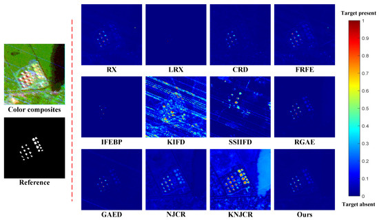 Color detection maps acquired by different HAD methods On the Los Angeles dataset for visual comparison.