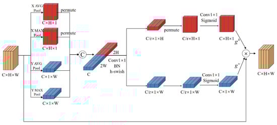The first step is to perform average pooling and maximum pooling along the horizontal and vertical coordinates using pooling kernels and for the given feature map . The output of the channel at the height h can be represented as: