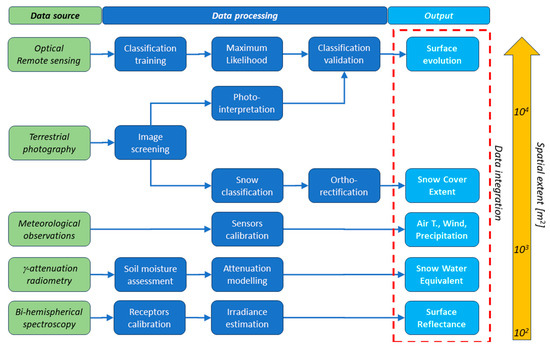 Data integration was the strategy approached for describing the surface evolution during the snow-melting season (Figure 2).