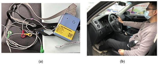 To obtain comprehensive and objective data, the experiment was conducted during daytime hours with a lower traffic volume to minimize the impact of non-road environmental factors on drivers. To ensure safety, we required the participating drivers in the driving experiment to be in good physical condition, maintain regular sleep patterns, possess a valid driver’s license, have ample driving experience, and fall within the age range of 23 to 40 years, with no history of adverse driving records or involvement in serious accidents. Among the 30 participants, the ratio of male to female drivers was 1:1, with an average age of 31.2 years and an average driving experience of 4.7 years. On the day before the experiment, their sleep conditions were normal, and in the 12 h leading up to the trial, they abstained from consuming any medication, alcohol, coffee, or other stimulating beverages. Prior to the start of the experiment, the experimenter provided the participants with basic information about the purpose of the study, the experimental procedure, and any relevant instructions. Throughout the entire duration of the experiment, participants were not allowed to use their phones or other electronic devices, and the experimenter maintained a quiet environment. To ensure driving safety, the participants were given designated rest periods when they felt fatigued.
