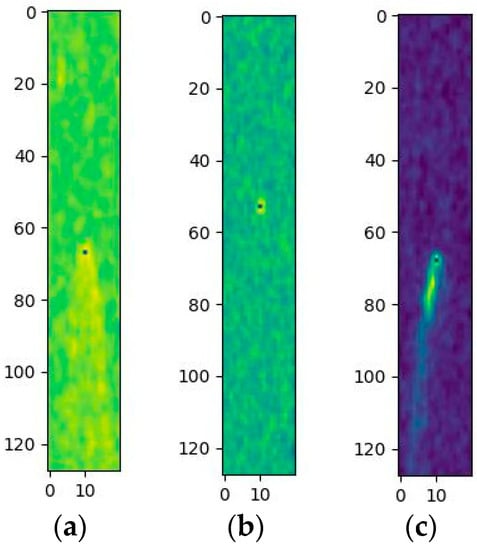 DDMs consist of a certain number of equally sized grids, each of which is sized as the length of the delay interval multiplied by the length of the Doppler interval, with each grid corresponding to one signal power. Figure 1a is a seawater DDM, and Figure 1b is a sea ice DDM collected on the ice field. The difference between them indicates that the rough surface of seawater will reduce the overall coherent specular reflection, resulting in a larger scintillation area and more of the DDM being extended along the delay and Doppler axes. As shown in Figure 2a,b, a DDM is easily affected by noise, especially in the case of a seawater DDM. The noise impact caused by the rough surface of seawater is greater than on that of a sea ice DDM, so the classification accuracy of a seawater DDM is generally lower than that of a sea ice DDM, which is one of the reasons for the decrease in classification accuracy. By observing the DDM dataset, it was found that some sea ice was melting from June to September, and some of the melted sea ice DDMs are shown in Figure 2c. The classification characteristic of the DDMs is either sea ice or seawater, therefore, there are difficult-to-classify DDMs during sea ice melting periods, and the accuracy of the classification algorithm will decline from June to September.