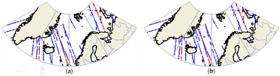 DDMs collected by TDS-1: (a) seawater DDM; (b) sea ice DDM.
