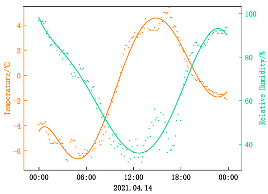 A set of weather stations has been set up in the study area, and meteorological data from 5 November 2020 to 19 January 2022 have been collected. Temperature, air humidity, and wind direction data were processed and analyzed in this work, as shown in Figure 2.