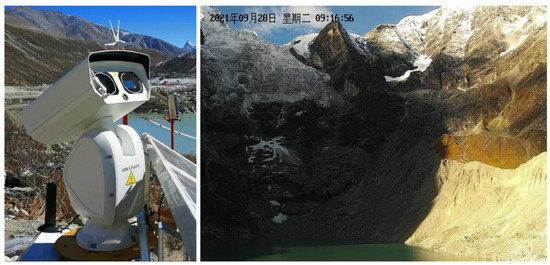 Since it is impossible to tell accurately that abnormal events monitored are ice avalanche events, a video surveillance device is installed near the infrasound array to realize video online transmission and local storage at the same time (see Figure 7 and Figure 8). In this study, infrasound signals occurring 2–3 min before and after a possible ice avalanche were collected and compared with the surveillance video to determine whether it was an ice avalanche event (see Figure 9).