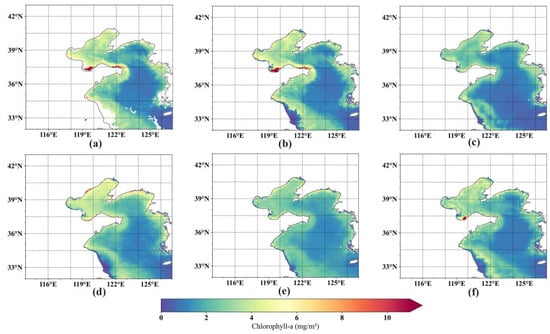The ocean is a critical ecosystem, and good water quality is essential for its sustainable development []. Unfortunately, in recent years, water pollution has emerged as a prevalent and pressing global environmental problem []. The eutrophication of water bodies is a rising concern, particularly in coastal regions where the proliferation of various harmful algal species is becoming increasingly common. Chlorophyll-a (Chl-a) is a photosynthetic pigment required for phytoplankton survival. This biochemical marker has gained significance as an indicator of water eutrophication due to its abundance in most algal species [,,,,]. Due to the low water exchange capacity of the Yellow Sea and Bohai Sea (YBS), red tides occur frequently, disturbing the natural balance of the local ecosystem [,,]. It is thus crucial to monitor Chl-a concentrations in the YBS, particularly near their coasts. Developing accurate long-term Chl-a prediction strategies is vital to address coastal seawater pollution and provide timely red tide warnings.