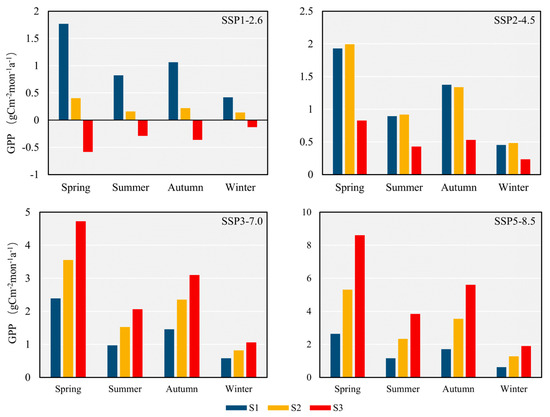 Slopes of seasonal GPP changes in the Yangtze River Basin under different scenarios.