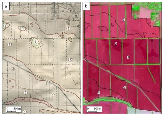 - Shapovalov, D.A.; Koroleva, P.V.; Kalinina, N.V.; Rukhovich, D.I.; Suleiman, G.A.; Dolinina, E.A. Differences in inventories of waterlogged territories in soil surveys of different years and in land management documents. Eurasian Soil Sci. 2020, 53, 294–309. [Google Scholar] [CrossRef]