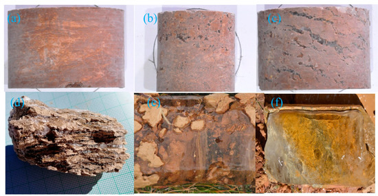 Six permafrost samples with different ice contents. (a) Ice-poor, with almost invisible ice crystals; (b) Icy permafrost, micro ice lenses or small ice particles can be seen (c) ice-rich, some ice crystals visible to the naked eye; (d) sediment-rich, uneven ice layers; (e) sediment poor, a mixture of ice and soil, with soil containing ice layer, and a lot of ice is visible; (f) pure ice.