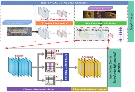 The structure of the proposed channel-to-channel second-order crossover self-attention model is illustrated in Figure 5, and the associated calculation equations are provided in Equations (5)–(7).