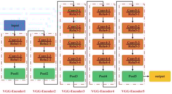 Subsequently, the backbone network (VGG-Encoder ) in the VGG-19 network structure is frozen (parameters are not trained), and an underwater SSS image trains the head network (VGG-Encoder x) in the network to achieve SSS image target recognition.