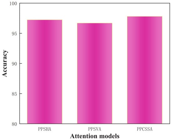 Furthermore, to validate the efficacy of the PPCSSA model, in this study, several attention mechanism-based ablation experiments were conducted. These experiments focused on three methods, the PPSHA, the PPSVA, and the PPCSSA, all utilizing the VGG-19 model as their backbone network. Table 7 provides the results from these ablation experiments.