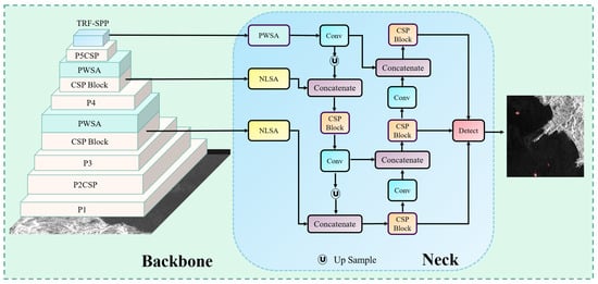 In this section, we introduce the overall architecture of the DSF-Net, the structure of the PWSA module, which is embedded in the Backbone of the DSF-Net, the structure of the NLSA module, which is located in the lateral connection between Backbone and Neck, the structure of the TRF-SPP module, which is placed at the bottom of the Backbone, and the design of the R-tradeoff loss.