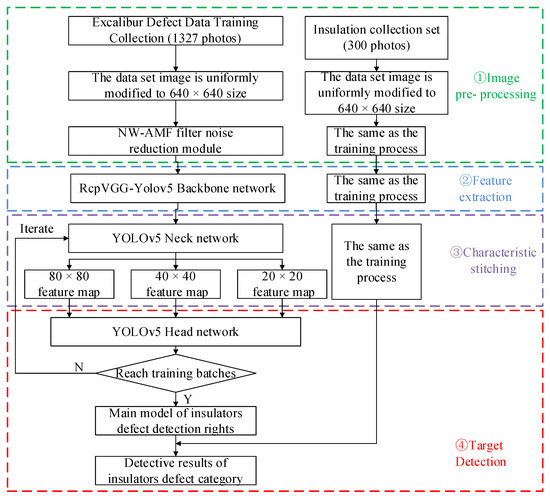 In the context of insulator defect detection, utilization of the YOLOv5 has revealed a notable drawback in terms of its sluggish inference speed. Additionally, it suffers from a high rate of misunderstanding, resulting in subpar accuracy. To address these issues, the present study proposes a novel approach that leverages RepVGG as the primary network prototype to reconfigure the existing framework of YOLOv5. The resultant algorithm, denoted as RcpVGG-YOLOv5, integrates noise and lightweight target detection techniques, as visually depicted in Figure 3.