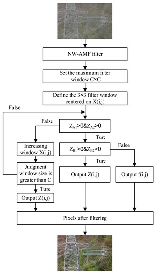 - Improving the direct acquisition of drone imagery is the focus of this study, given the complexity of the mechanical vibration background and the presence of attached images. In this paper, the filtering method of the adaptive median filtering algorithm is improved, and a new filtering algorithm is proposed, i.e., NW-AMF, with the aim to mitigate the impact of image quality problems on the accuracy of image defect detection, so as to improve the noise reduction effect and detection accuracy.