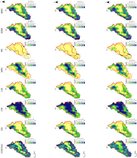 Changes in landscape pattern in MdfNNR. (a–h): 2000 year; (i–p): 2010 year; (q–x): 2020 year.