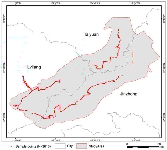 The distribution of field samples in the study area.