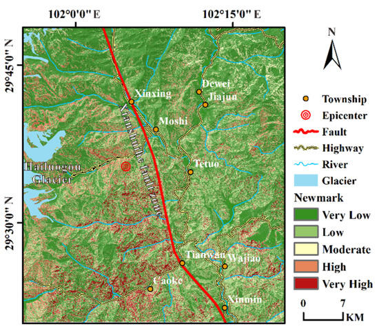 - Wang, X.; Fang, C.; Tang, X.; Dai, L.; Fan, X.; Xu, Q. Research on Emergency Evaluation of L.andslides Induced bythe L.uding Ms 6.8 Earthquake. Geomat. Inf. Sci. Wuhan Univ. 2023, 48, 25–35. [Google Scholar] [CrossRef]