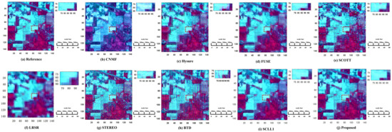 - Mu, T.; Nie, R.; Ma, C.; Liu, J. Hyperspectral and panchromatic image fusion based on CNMF. In Proceedings of the 2021 3rd International Conference on Advances in Computer Technology, Information Science and Communication (CTISC), Shanghai, China, 23–25 April 2021; IEEE: Piscataway, NJ, USA, 2021; pp. 293–297. [Google Scholar]