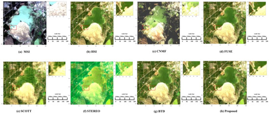 - Li, S.; Dian, R.; Fang, L.; Bioucas-Dias, J.M. Fusing hyperspectral and multispectral images via coupled sparse tensor factorization. IEEE Trans. Image Process. 2018, 27, 4118–4130. [Google Scholar] [CrossRef]