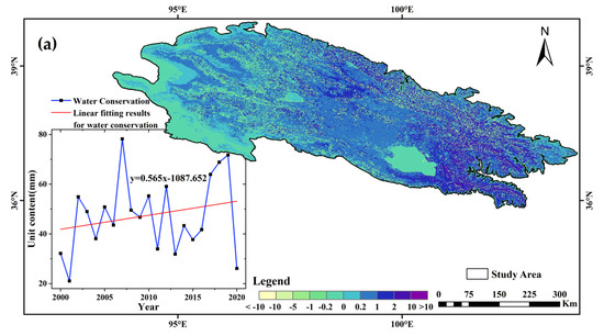 The change of water conservation was measured using linear regression, and the slope of it represents the change scope. The formula is as follows: