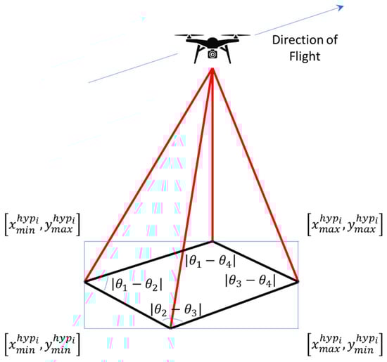 First, the direction of travel, , at each epoch, , is computed over the entirety of the flight; being the epoch at which the first image is observed by the UAV and the last. A histogram of is formed and the bin with the most samples, , is deemed the primary direction of travel. The primary direction is referred to as , and direction numbers, , are assigned to each epoch for which satisfies the inequality, , where is a threshold (typically 10°) and used to compute the four primary directions/quadrants of travel for a lawnmower pattern. is used to represent epochs during which the UAV is not travelling in any of the four primary directions. Thus, each epoch is assigned a parameter, , to indicate whether it is travelling (say) north, south, east or west, or none of these directions.
